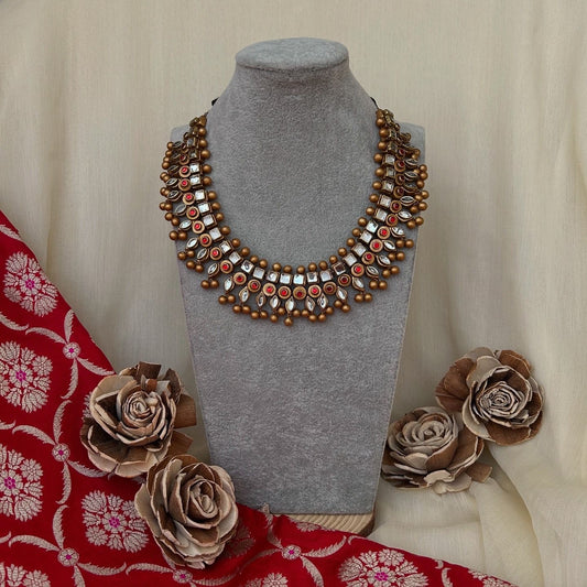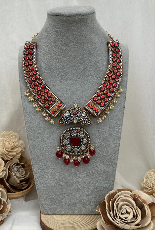 Handmade Butterfly Terracotta Necklace Set with Earrings