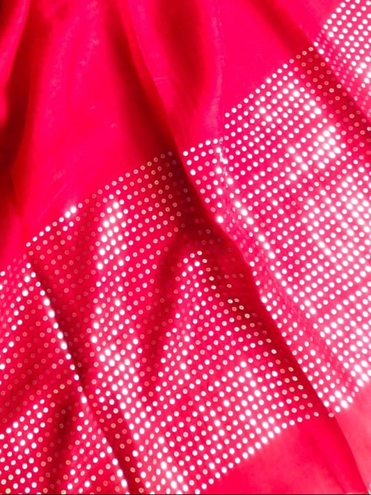 Red Pure Muslin Sequinced Jamdani Saree with Matka Silk Blouse Piece