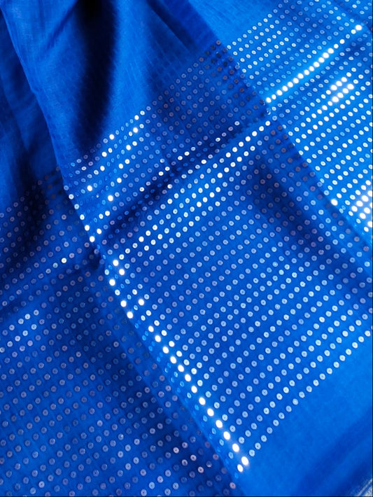 Blue Pure Muslin Sequinced Jamdani Saree with Matka Silk Blouse Piece