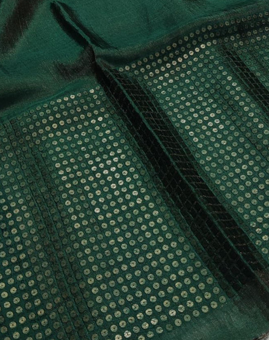 Dark Green Pure Muslin Sequinced Jamdani Saree with Matka Silk Blouse Piece