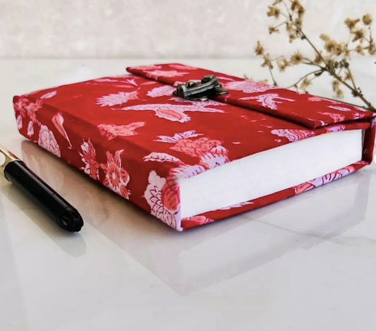 Yellow Handblock Print Fabric Journal with Brass Lock