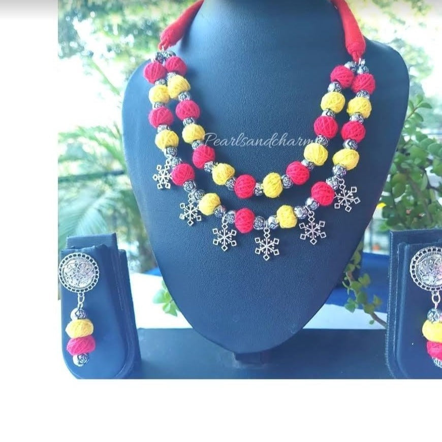 Handmade Terracotta Stone-Embellished Necklace Set