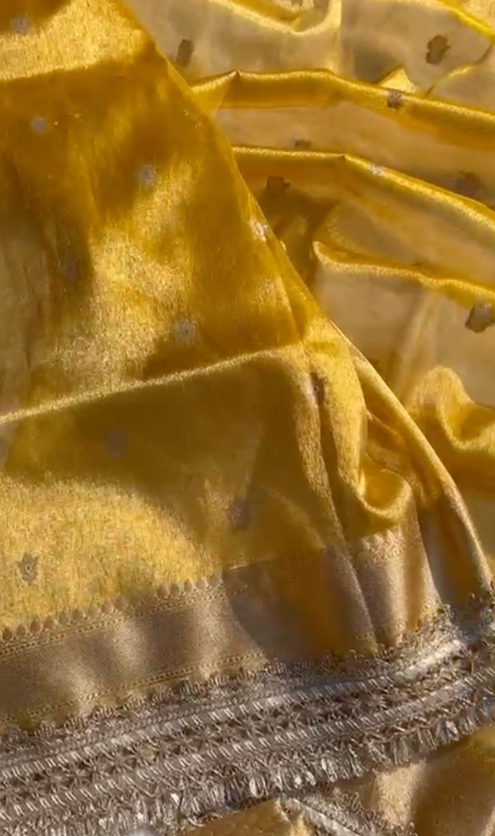 Yellow Soft Tissue Linen Blend Saree with Hand Embroidery