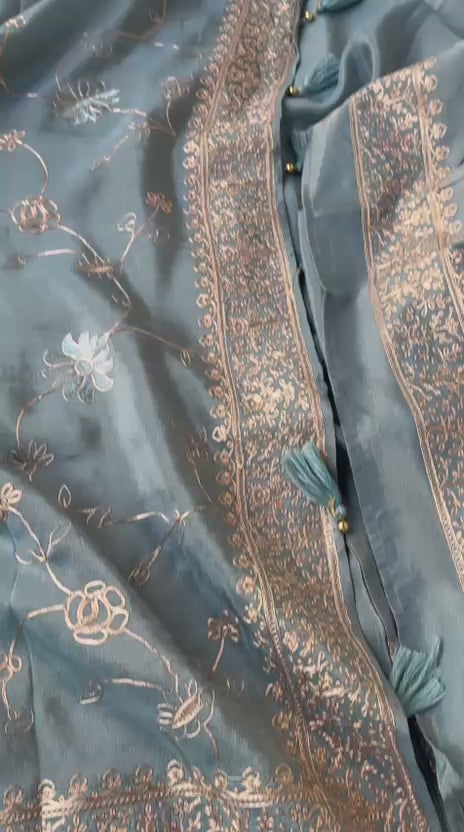 Muga Silk x Soft Tussar Silk Saree with Pittan Embroidery