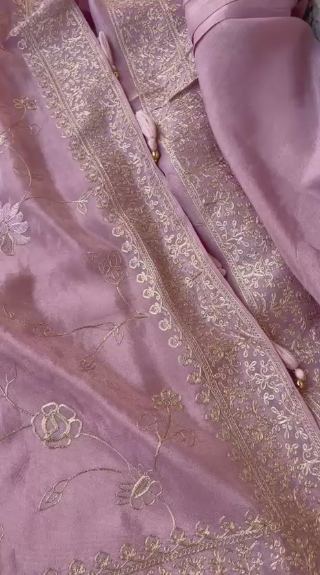 Purple Soft Tissue Linen Blend Saree with Hand Embroidery