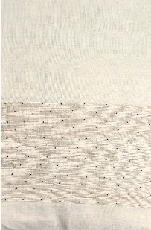 Size- 28*78 inch ,Colour- White ,Gsm - 80gm ,Plain weave, Finish : Mukaish and Slub Border.