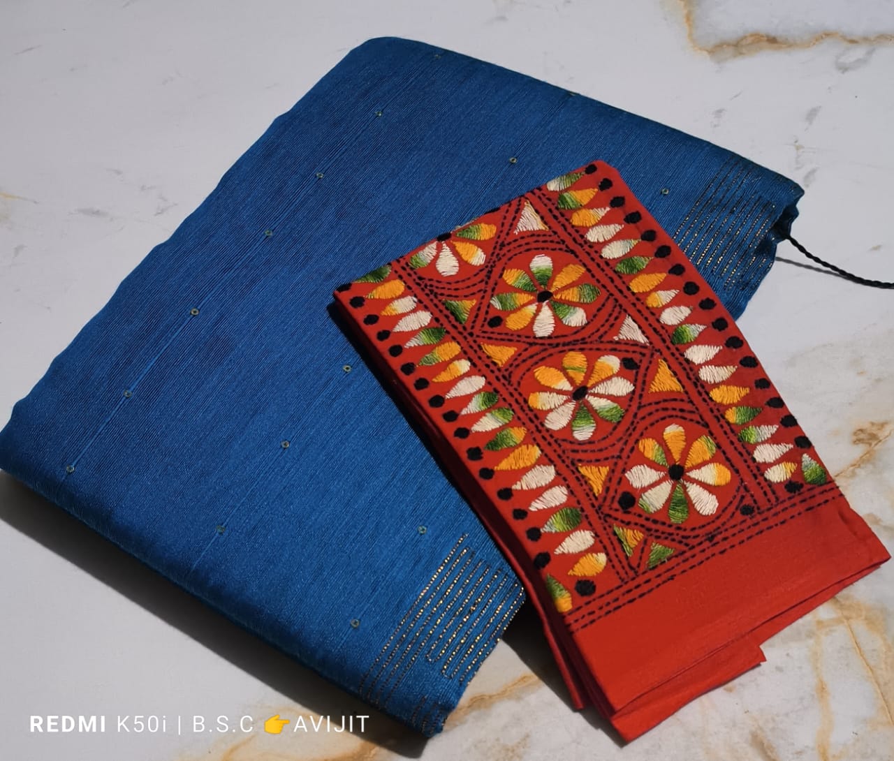 With Kantha stitch blouse piece